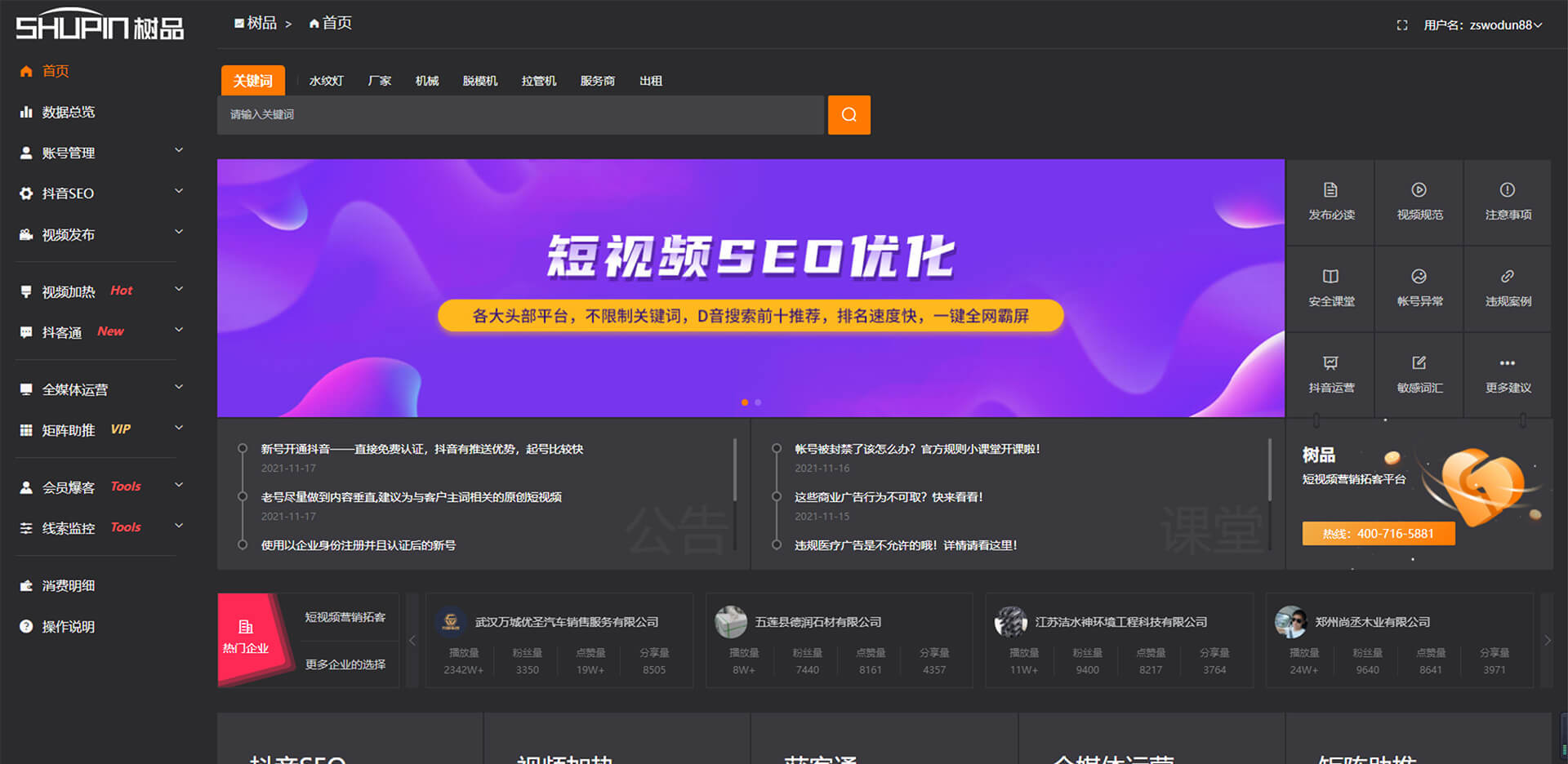 幫助企業(yè)解決在短視頻營銷中的內容生產、賬號搭建、賬號運營 、精準低成本引流、業(yè)務場景、服務場景、服務效率等問題的短視頻營銷拓客平臺。